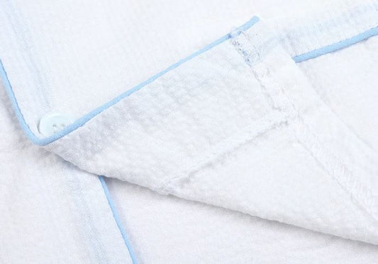 Boys White with Blue Piping Seersucker Pyjama Sets - Long