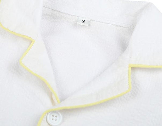 Boys White with Yellow Piping Seersucker Pyjama Sets