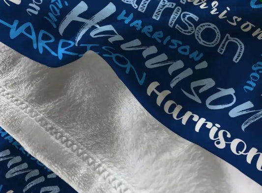 Wrap yourself in comfort and personalisation with our name blankets. Each blanket is meticulously crafted from high-quality materials and can be customised with any name, making it a unique and thoughtful gift. Whether for a cozy night in, adding a personal touch to your home décor, or gifting to someone special, our name blankets offer warmth and individuality in one delightful package. Experience the perfect blend of style and sentiment with a blanket that's truly one-of-a-kind.