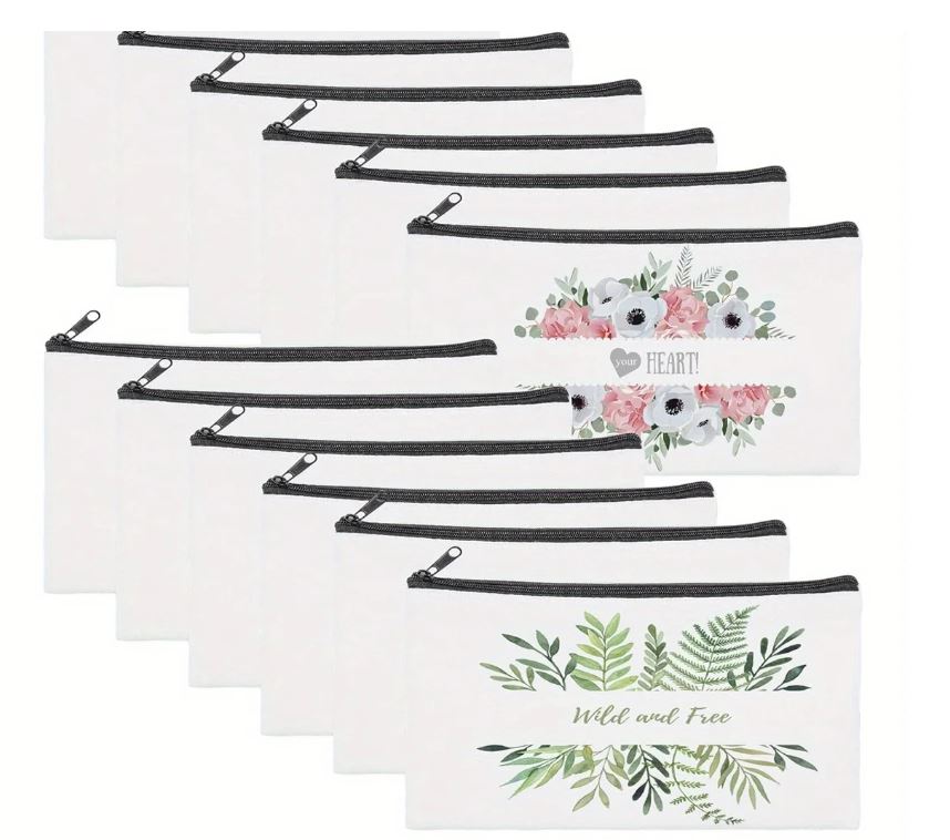 Upgrade your crafting business or gift range with this 10 Pack of Sublimation Cosmetic Bags, perfect for personalisation! Made from high-quality polyester, these blank makeup bags are ideal for sublimation printing, heat transfer vinyl, embroidery, and more. Whether you're creating custom gifts, branding promo items, or adding to your small business stock, these versatile cosmetic bags are a must-have. Great for makeup, travel essentials, or everyday storage – customise and sell or gift with confidence!