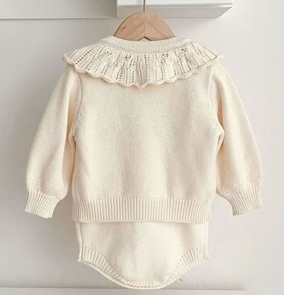 Our Knitted Bow Set is the perfect blend of comfort and charm. Featuring a soft knitted romper, matching cardigan, and an adorable bow detail, it’s a timeless outfit for your little one. Ideal for special occasions or everyday snuggles — style and warmth all in one!