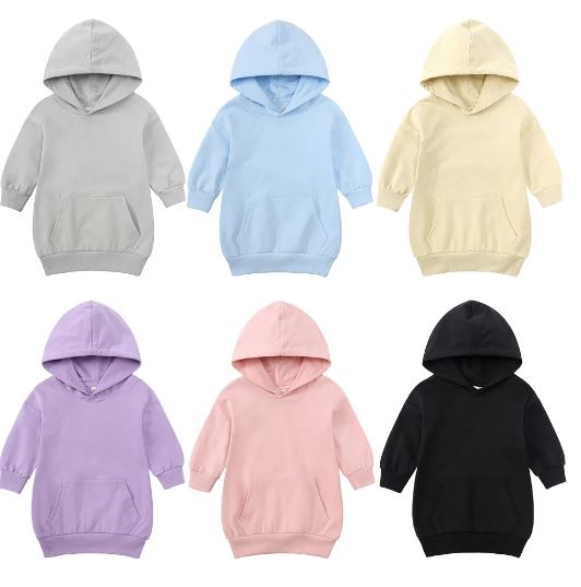 Dress your little fashionista in cozy style with our charming girls' jumper dress featuring a hood! Perfect for cooler days or simply adding a touch of flair to her outfit, this jumper dress combines comfort and fashion effortlessly. The hood provides extra warmth and a trendy look, while the dress's soft and breathable fabric ensures all-day comfort. Whether she's playing at the park, attending a casual outing, or simply relaxing at home, this jumper dress with a hood is sure to become a wardrobe favorite. Let her express her unique style and stay comfortable in any season with this versatile and adorable piece!
