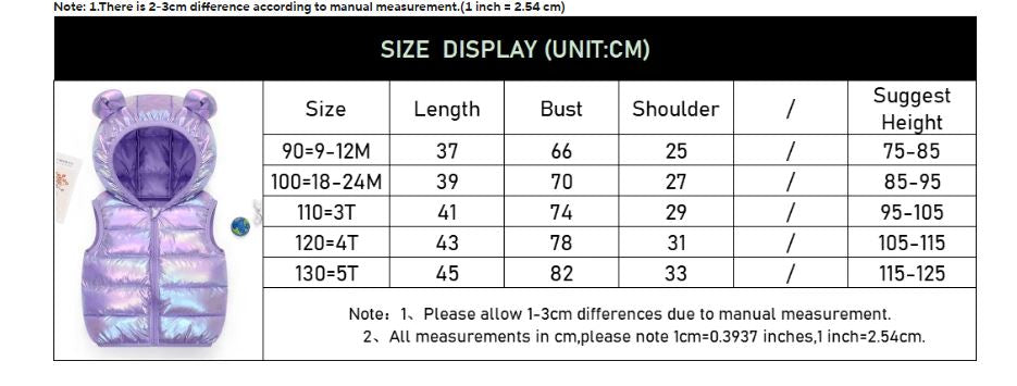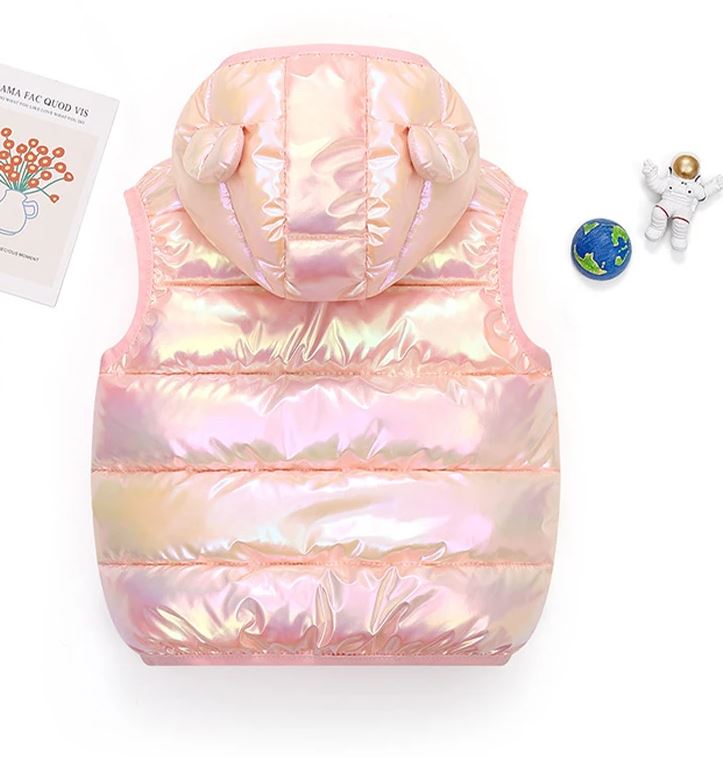 This adorable pastel gilet with bear ears is the perfect addition to any child's wardrobe! Made from soft, cozy fabric, it ensures warmth and comfort during cool days. The charming bear ears on the hood add a playful touch, making it a favorite for imaginative play and outdoor adventures. Available in gentle hues like baby pink, light blue, and mint green, this gilet not only keeps your little one snug but also adds a splash of color to their outfit. With easy-to-use zippers and handy pockets for tiny treasures, it's both practical and cute, perfect for layering over sweaters or long-sleeve shirts. Whether for a fun day at the park or a casual stroll, this bear-eared gilet is sure to delight and keep your child warm and stylish.