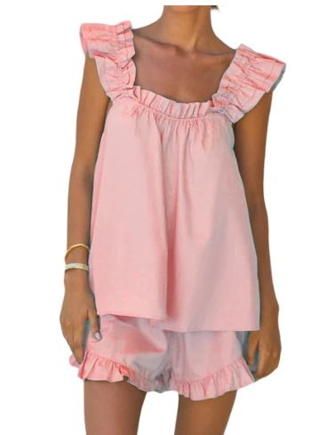 Introducing our stylish ladies' summer pyjama set, the perfect blend of comfort and chic for warm nights. Crafted from lightweight and breathable fabric, this set keeps you cool and relaxed as you unwind. With its trendy designs and flattering cuts, it's ideal for lounging at home or enjoying a peaceful night's sleep. Whether you prefer playful patterns, classic stripes, or soft pastels, our summer pyjama sets offer a variety of options to suit your style. Elevate your summer evenings with our comfortable and fashionable pyjama sets, designed to keep you feeling cool and looking fabulous all season long.