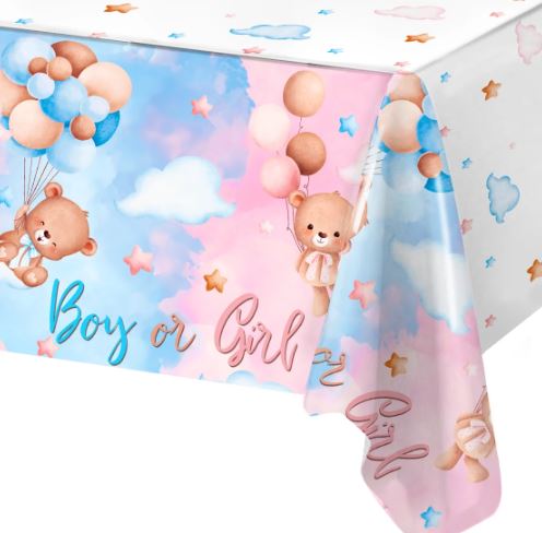 Introducing our Gender Reveal Baby Shower Tablecloth, the perfect centerpiece for your celebration! Designed with excitement and anticipation in mind, this charming tablecloth features a unique gender reveal theme, making it an essential element of your party decor. Crafted from high-quality material, it provides a durable and stylish foundation for your buffet, gift table, or seating area. With its adorable design and vibrant colors, it sets the stage for an unforgettable reveal moment, creating a sense of anticipation and joy among your guests. Whether you're team pink, team blue, or keeping it a surprise until the last moment, our Gender Reveal Baby Shower Tablecloth is sure to add a touch of magic to your special day. Let the countdown to the big reveal begin!