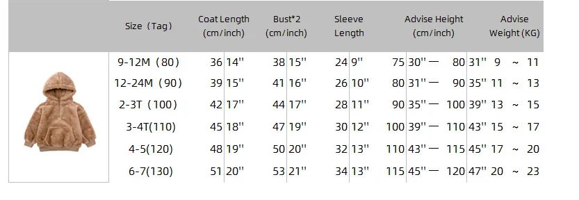 Wrap your little one in cozy comfort with our fluffy hoodie! Crafted from ultra-soft and plush materials, this hoodie offers warmth and luxury like no other. The fluffy texture provides a tactile sensation that your child will love, while the hood adds an extra layer of snugness. Perfect for chilly days or lounging around the house, this hoodie is as stylish as it is comfortable. Whether they're playing with friends, watching movies, or enjoying a family outing, our fluffy hoodie is sure to keep them warm and cozy all day long. Treat your child to the ultimate comfort with our irresistibly soft and fluffy hoodie!