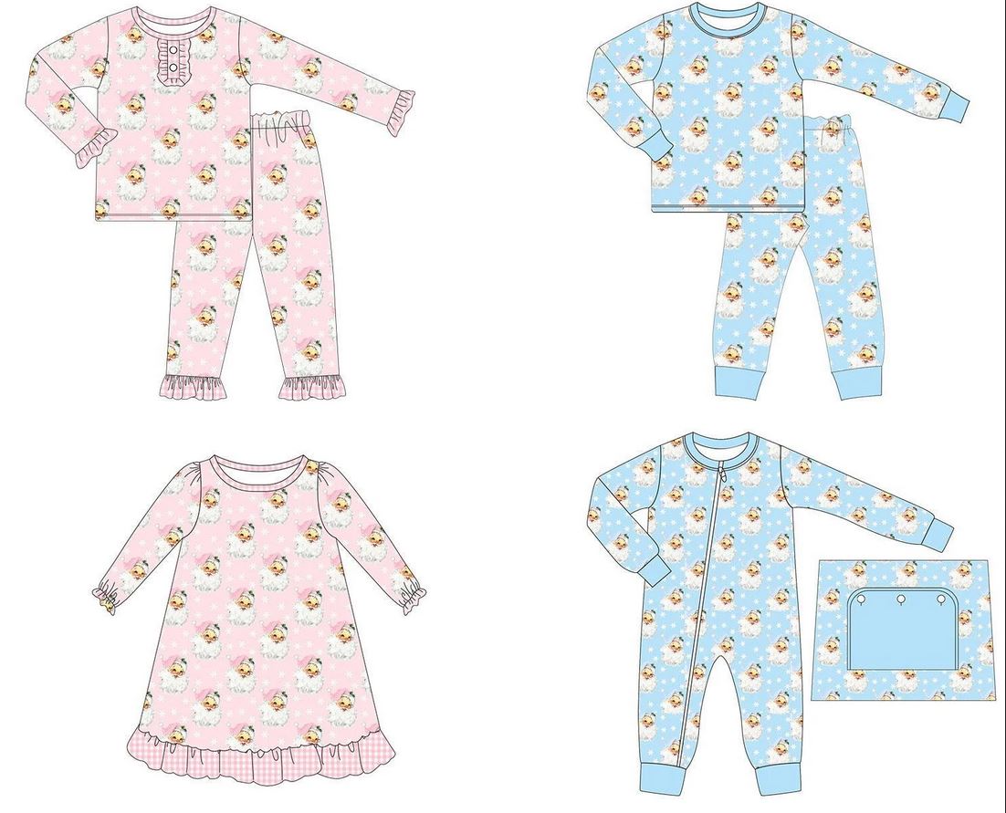 Vintage Santa pyjamas for children bring a nostalgic touch to holiday sleepwear, capturing the timeless charm of Christmas past. Featuring a classic Santa Claus design with his rosy cheeks, twinkling eyes, and jolly smile, these pyjamas are adorned with retro holiday patterns and colors. Made from soft, cozy fabrics, they ensure a snug and comfortable fit, perfect for keeping little ones warm on chilly winter nights. This delightful vintage design adds a touch of tradition and magic, making bedtime stories and Christmas Eve even more special.